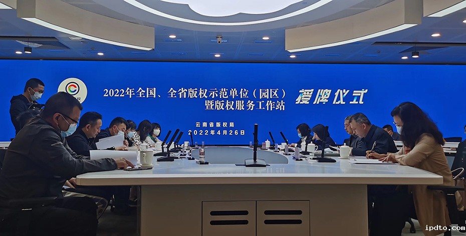 2022年全国、全省版权示范单位(园区)暨版权服务工作站授牌仪式今日举行,云南华体汇app官网登录入口手机版下载知识产权代理有限公司等10家企业获的“云南省版权服务工作站”授牌。